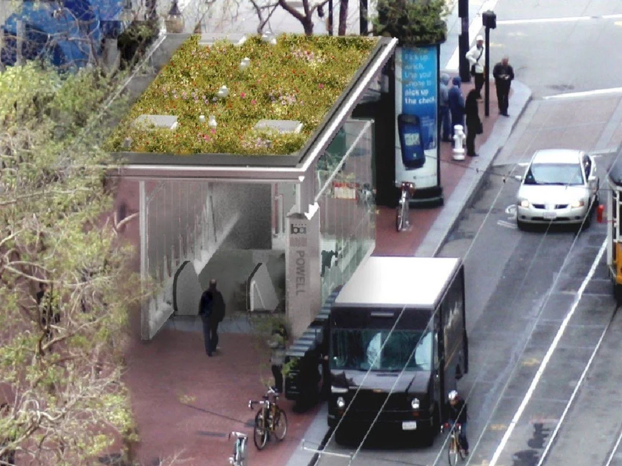 BART Canopy Living Roofs rendering, courtesy of VIA, A Perkins Eastman Studio